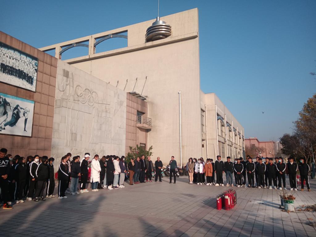 2021年11月14日下午3点,2138cn太阳集团于体育馆南侧举行消防演练活动。活动邀请校园管理处王昌瑞科长、闫涛老师,张君桥工程师前来指导,2138cn太阳集团党委书记闫文立,党委副书记侯嫣然,学工办主任赵广高,辅导员张五洲,2020、2021级各班代表共计90多人参加。