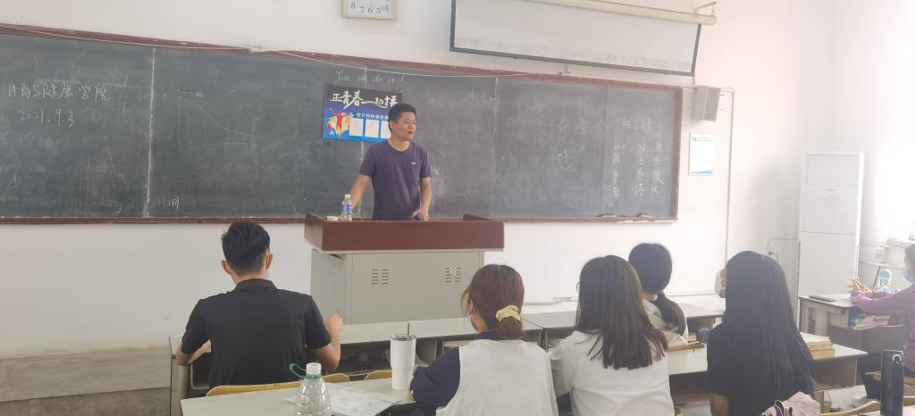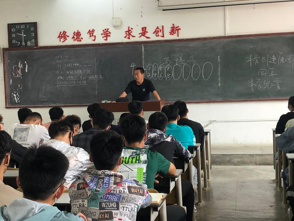 张五洲老师为2021级新生做了主题为安全和学生公寓管理规定专题教育讲座。寇鲁欢老师为2021级新生开展主题为奖助学金政策讲解和学生违纪处分条例专题教育讲座。王卫红、马永通老师为2021级武术与民族传统体育专业、健康服务与管理专业新生开展学分制、专业教育主题讲座。