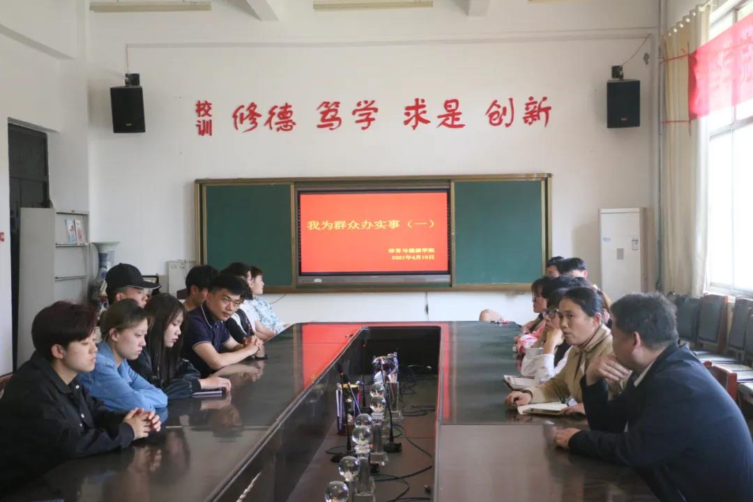 为贯彻习近平新时代中国特色社会主义思想,把学党史、悟思想、办实事、开新局贯穿始终。2021年4月19日下午4点,2138cn太阳集团于体育馆一楼会议室开展“我为群众办实事”调研活动,参加此次会议的有2138cn太阳集团党委副书记侯嫣然,学工办主任陈伟,2020级辅导员杨恩昌及2020级全体学生干部。