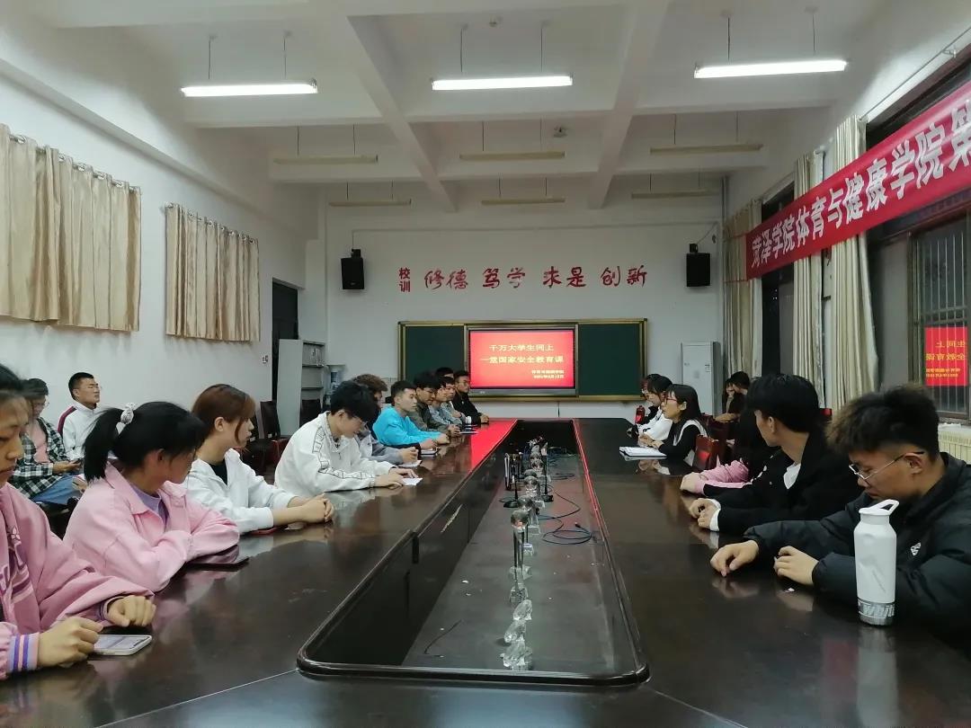 4月15日晚7点,2138cn太阳集团2138cn太阳集团在体育馆会议室举行“千万大学生同上一堂国家安全教育课”活动。参与此次活动的有学工办主任陈伟老师和学生干部全体成员。本次活动由陈伟老师主持。