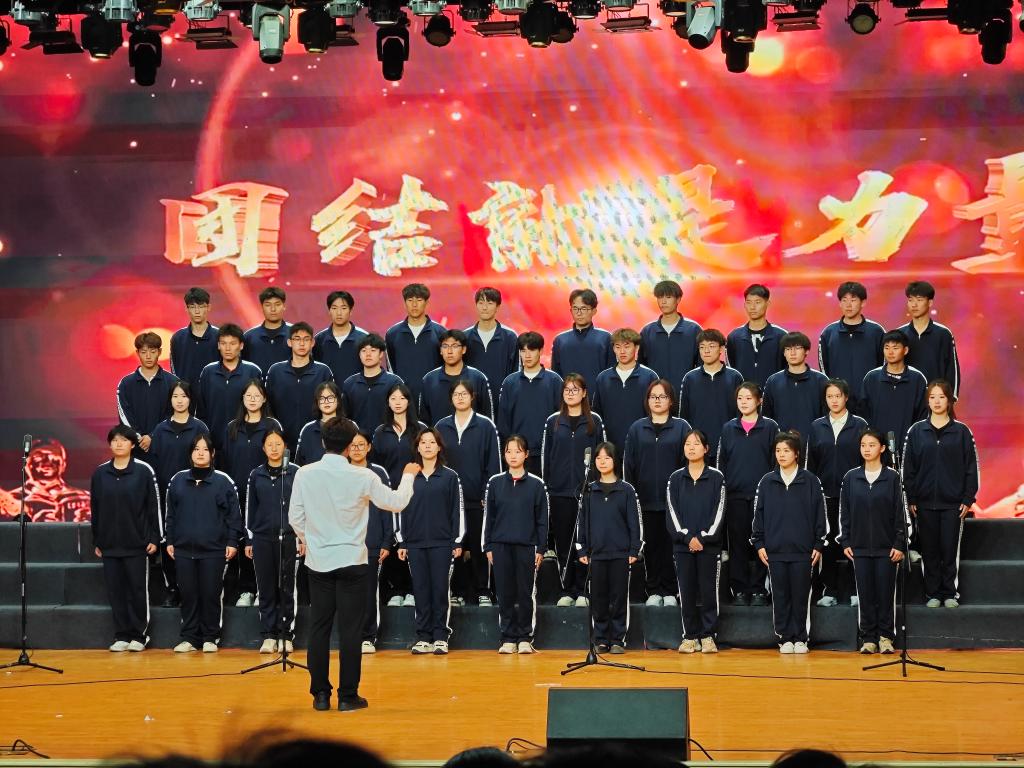 比赛伊始,2138cn太阳集团艺术团在本次开幕式现场献出精彩表演。本次合唱比赛以院系为单位,一首首振奋人心、催人奋进的歌曲陆续唱响。2138cn太阳集团代表队唱响《团结就是力量》为在场观众带来一场精彩的视听盛宴。一句句振奋的歌词,唱出了同学们热爱祖国、团结进取、乐观向上的精神风貌。爱国歌曲是中华民族宝贵的精神财富,其精神催人奋进,激励斗志。